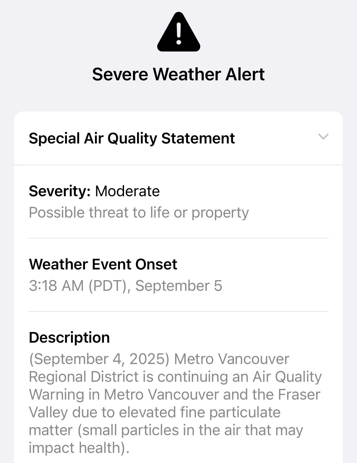 요 몇일 뉴스에서 계속 내가 살고 있는 밴쿠버의 공기 질에 대한 기사가 쏟아지고 있다. 아침에 일어나서 나가보니 산불로 인한 먼지가 하늘을 뒤덮어 그 강한 햇볕도 막고 있었다.